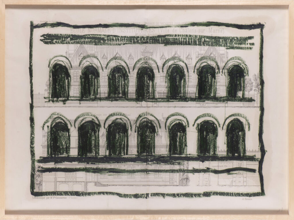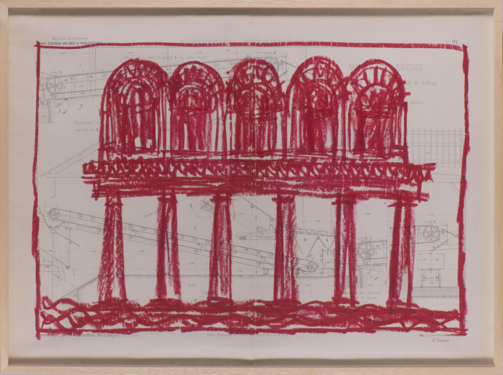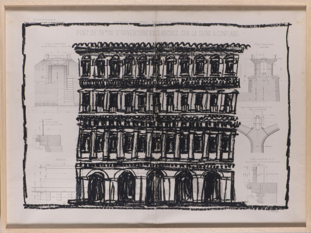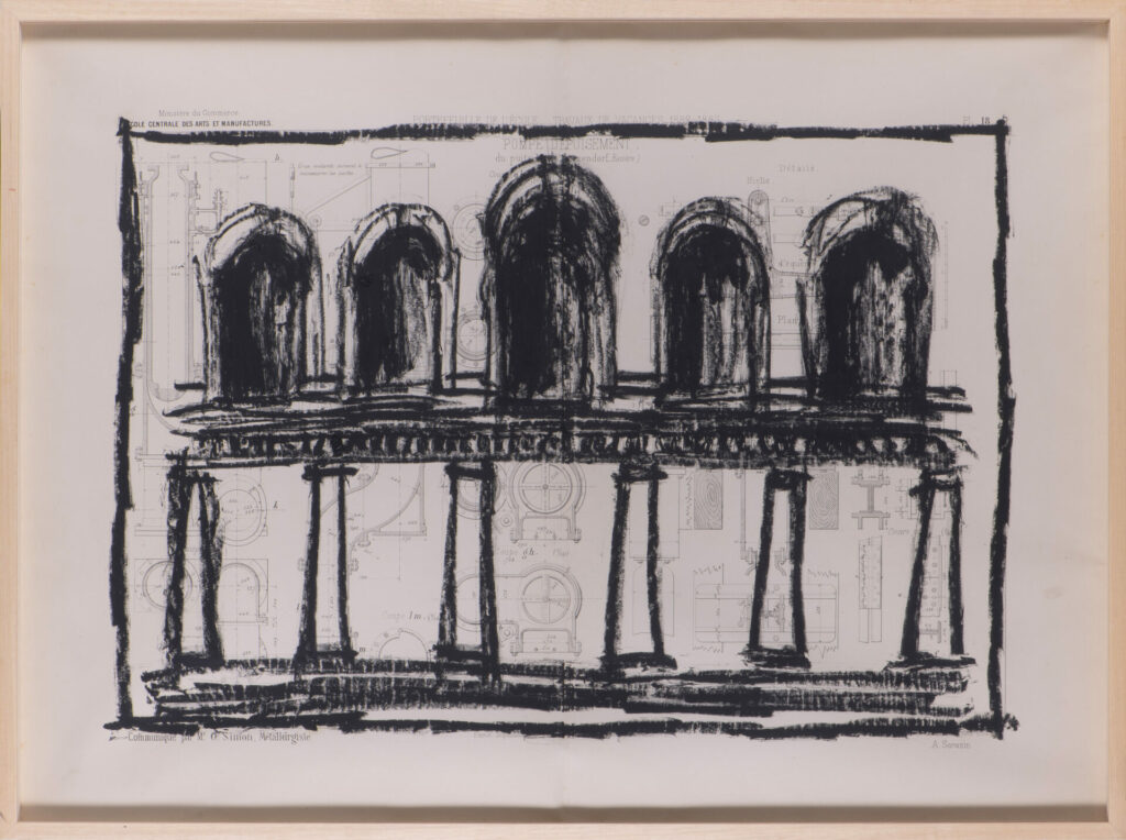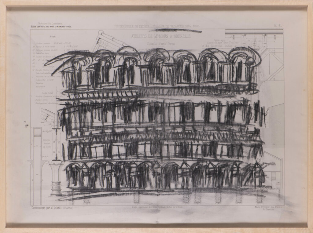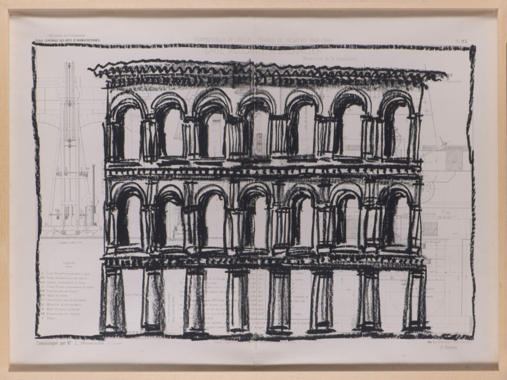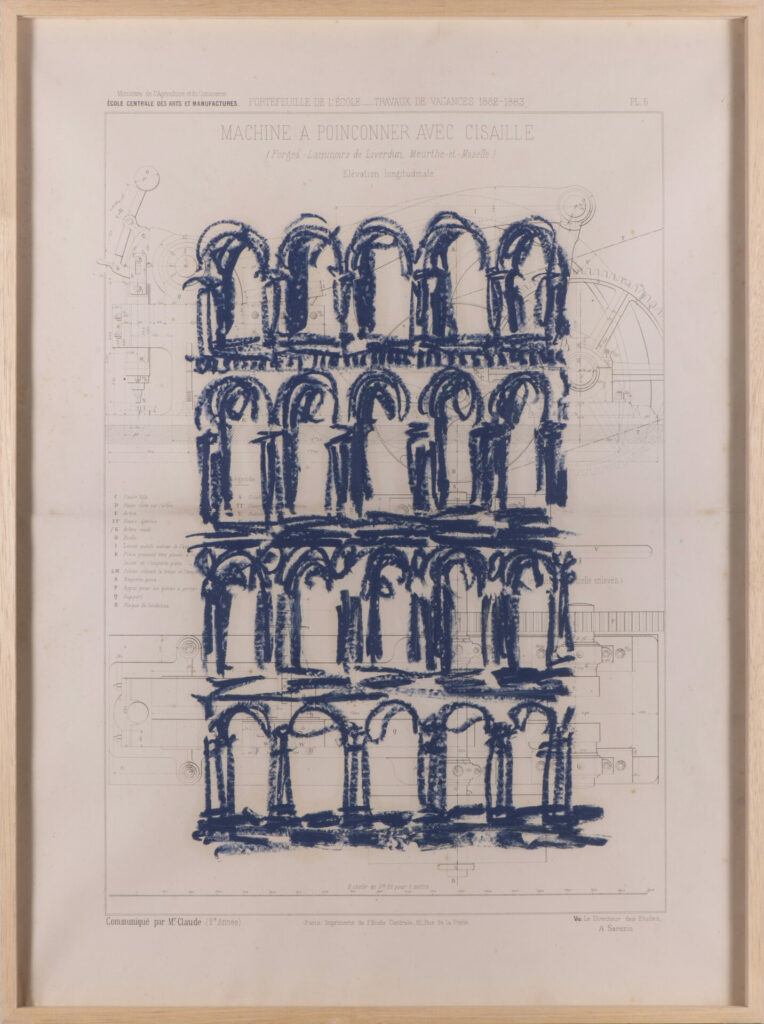 Pour cette série, j’ai majoritairement utilisé des anciens plans techniques, très détaillés et précis. Par opposition à ces dimensions détaillées, j’ai dessiné à main levée, de façon intuitive et naturelle. La pastel m’a permis de jouer sur les ombres et lumières, et d’ajouter un contraste riche.