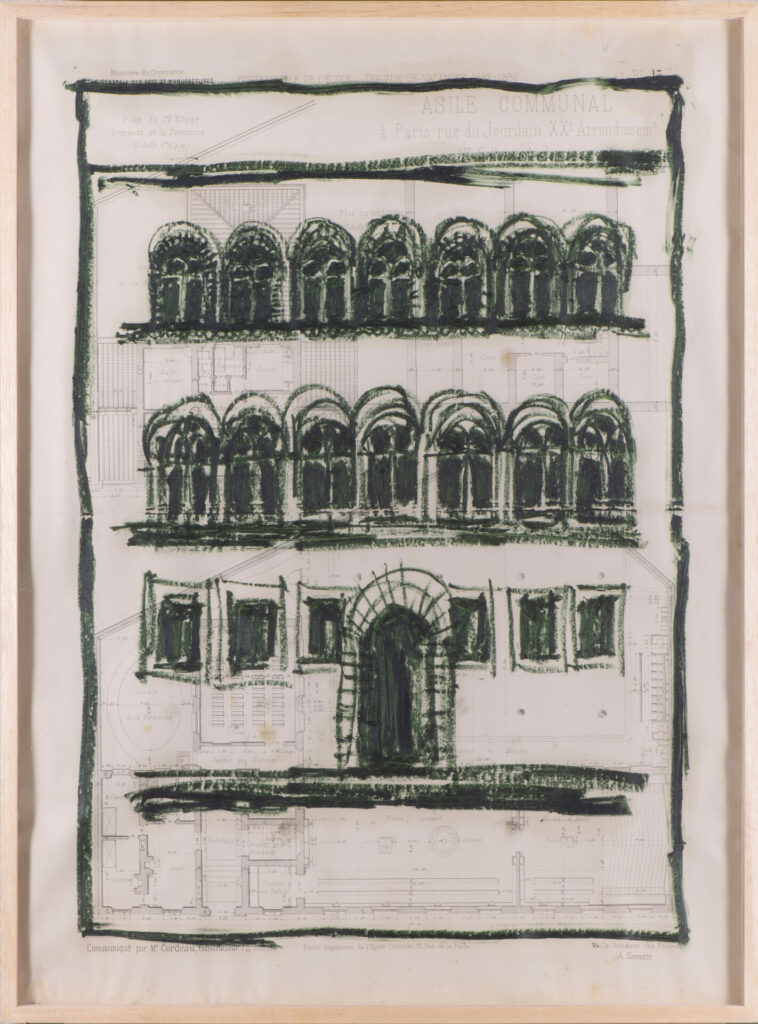 Cette série évoque l’idée originelle de du bâtiment, lorsqu’elle sort instinctivement de mon imagination. Cette idée sera ensuite transformée en plans architecturaux plus détaillés, qui sont évoqués par les tracés techniques sur lesquels j’ai réalisé ces esquisses.