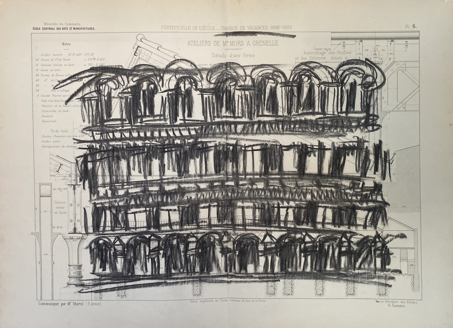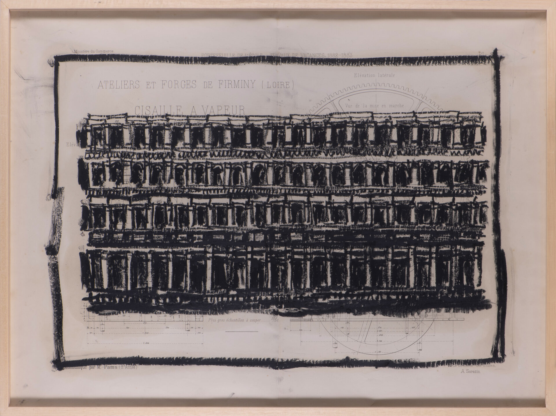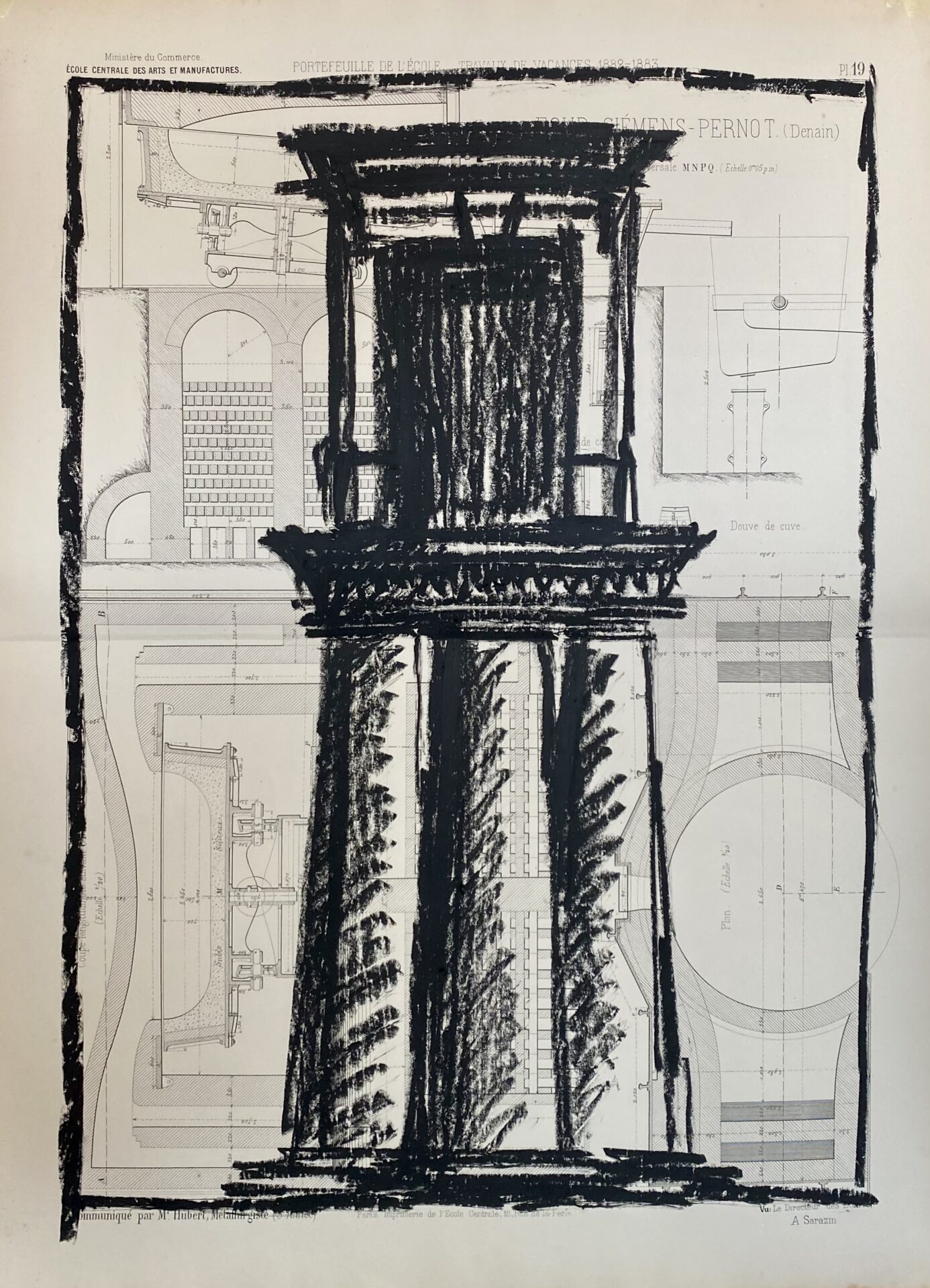 Pour cette série, j’ai majoritairement utilisé des anciens plans techniques, très détaillés et précis. Par opposition à ces dimensions détaillées, j’ai dessiné à main levée, de façon intuitive et naturelle. La pastel m’a permis de jouer sur les ombres et lumières, et d’ajouter un contraste riche.