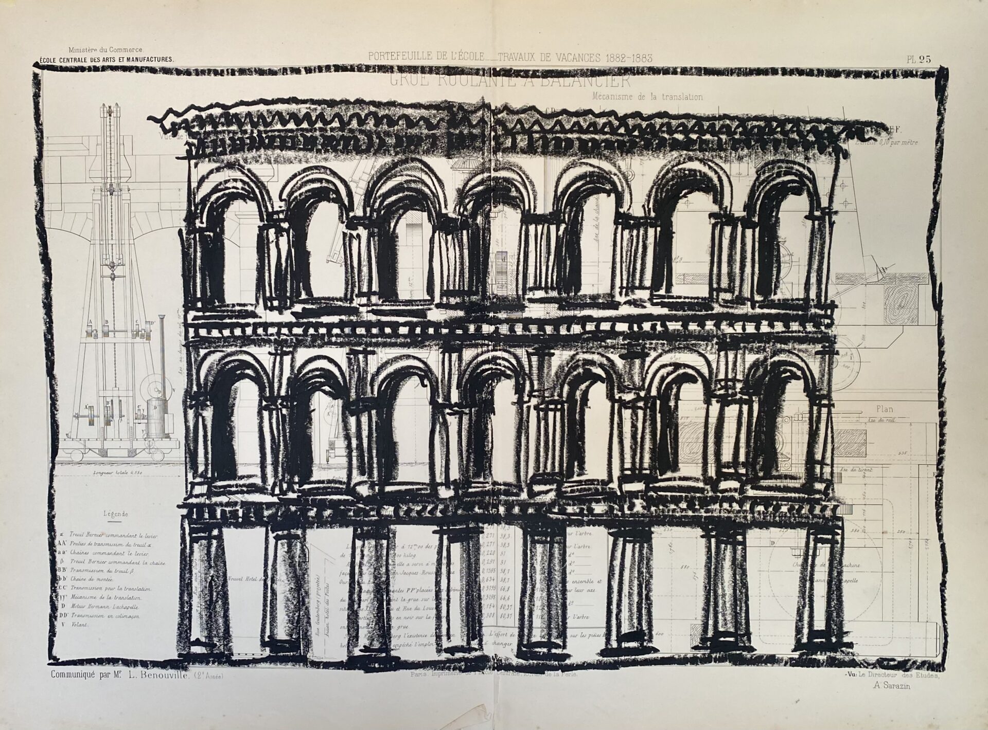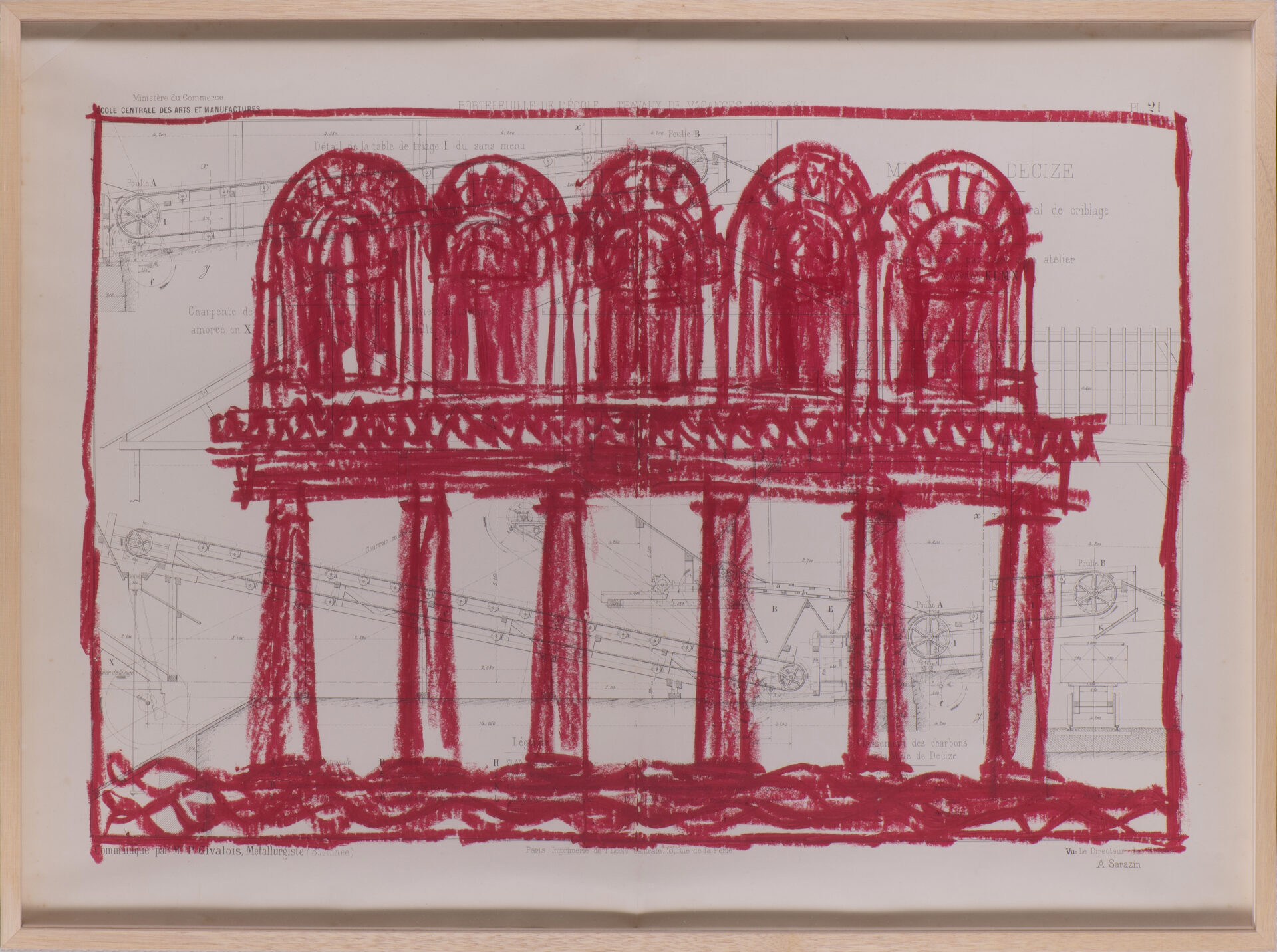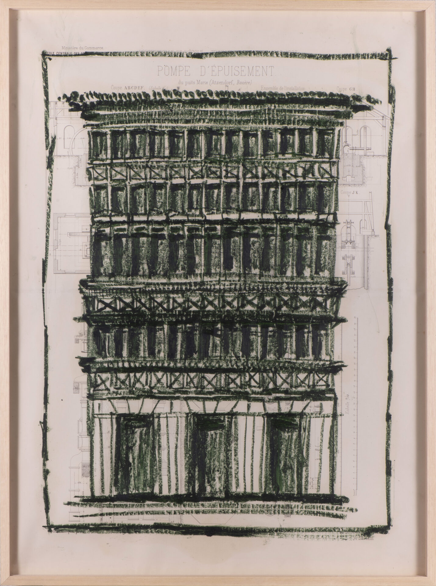 Pour cette série, j’ai majoritairement utilisé des anciens plans techniques, très détaillés et précis. Par opposition à ces dimensions détaillées, j’ai dessiné à main levée, de façon intuitive et naturelle. La pastel m’a permis de jouer sur les ombres et lumières, et d’ajouter un contraste riche.
