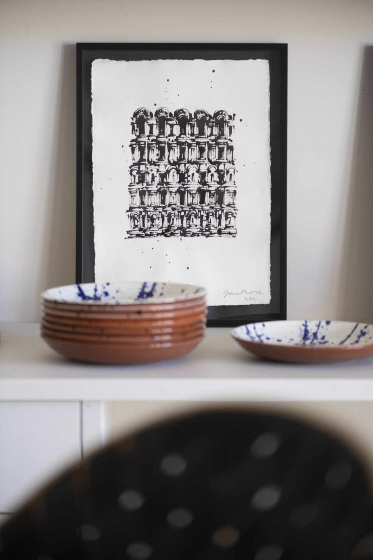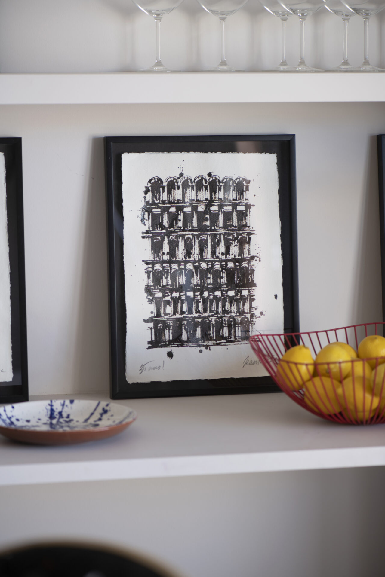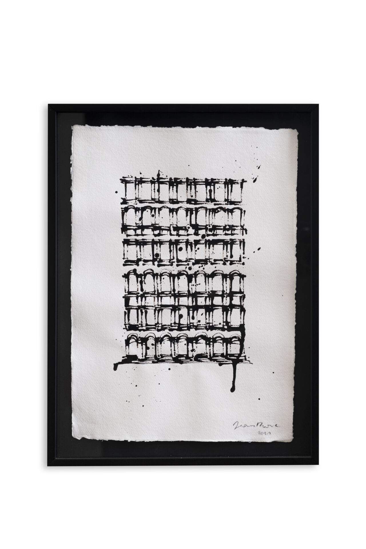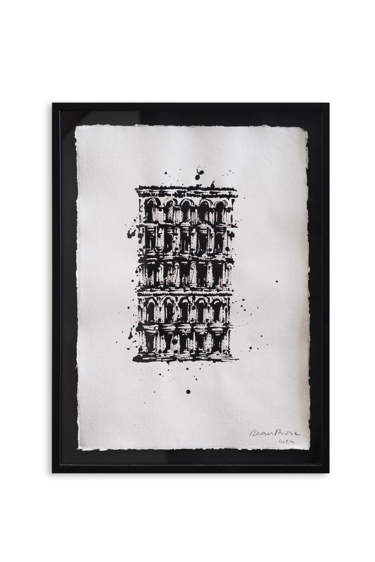 Pour moi, dessiner des bâtiments est une manière de capturer la beauté intemporelle de l’architecture et de l’histoire qui les entoure. Dans ma dernière série de dessins, j’ai choisi de travailler exclusivement avec de l’encre noire sur du papier recyclé fait main.